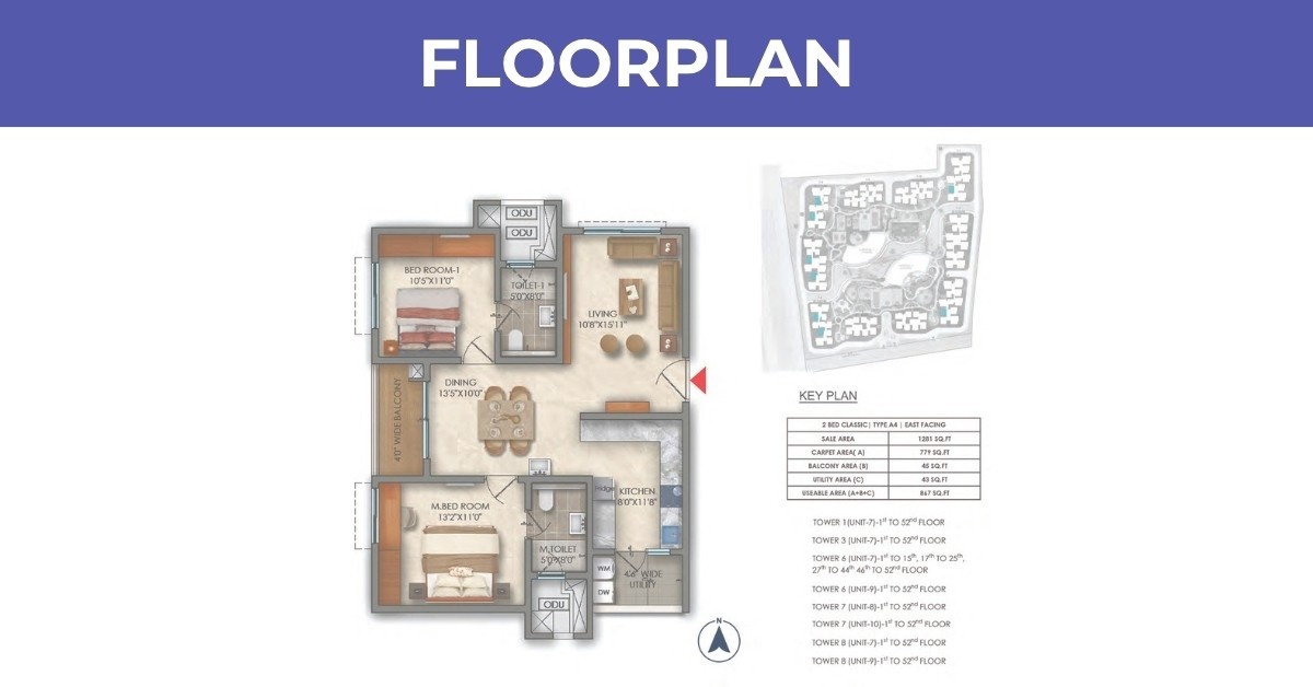 | 2 BHK + 2T | 1169 – 1281 Sq.Ft. | Rs. 93 Lakhs* Onwards Price Breakup |