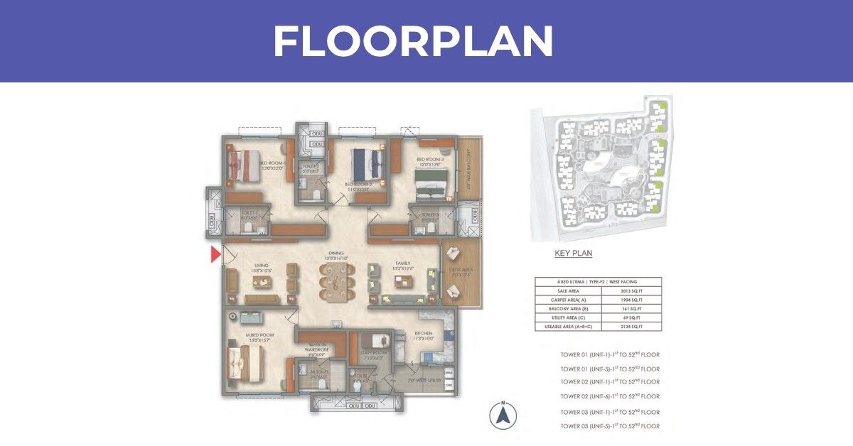 | 4 BHK + 4T + Study | 2900 – 3013 Sq.Ft. | Rs. 2.39 Cr* Onwards Price Breakup |